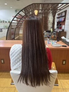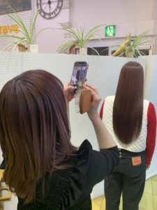 内心どうなるのか不安なところもありながら、技術体験していきました、ものすごい良い意味で期待を裏切ってくれました♪実際の髪の質感を見て、触ってもらいたいくらいです。写真でもわかると思いますが、色といい、艶、触り心地最高😃でした♪