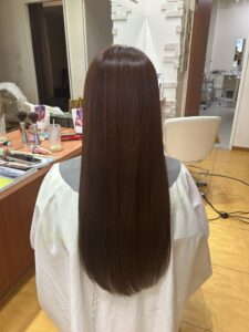 ポイントはうねりを抑えながら、カラーとサロントリートメントをしていくという新しいタイプのオージュアになります。
